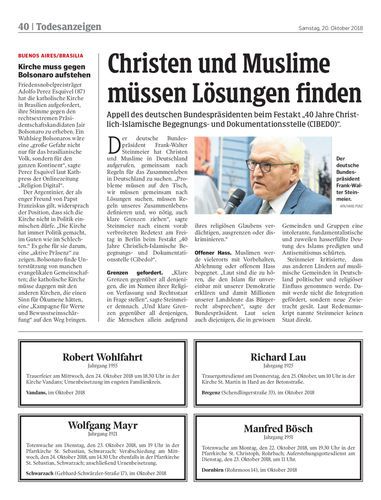 Appell des deutschen Bundespräsidenten beim Festakt „40 Jahre Christlich-Islamische Begegnungs- und Dokumentationsstelle (CIBEDO)“.