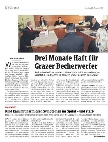 Steirer hat bei Sturm-Match einen Schiedsrichter-Assistenten verletzt. Beim Prozess in Kärnten war er gestern geständig.