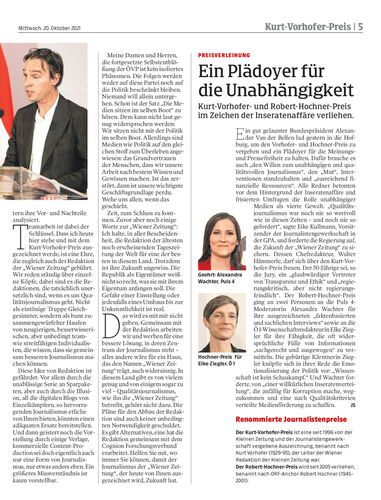 Kurt-Vorhofer- und Robert-Hochner-Preis im Zeichen der Inseratenaffäre verliehen.