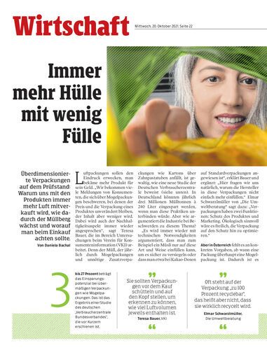 Überdimensionierte Verpackungen auf dem Prüfstand: Warum uns mit den Produkten immer mehr Luft mitverkauft wird, wie dadurch der Müllberg wächst und worauf man beim Einkauf achten sollte. Von Daniela Bachal