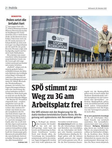 Die SPÖ stimmt mit der Regierung für 3G, dafür bleiben betriebliche Gratis-Tests. Die Regelung soll spätestens mit November gelten.