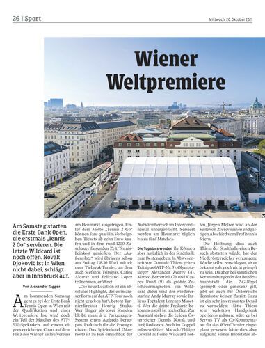 Am Samstag starten die Erste Bank Open, die erstmals „Tennis 2 Go“ servieren. Die letzte Wildcard ist noch offen. Novak Djoković ist in Wien nicht dabei, schlägt aber in Innsbruck auf.