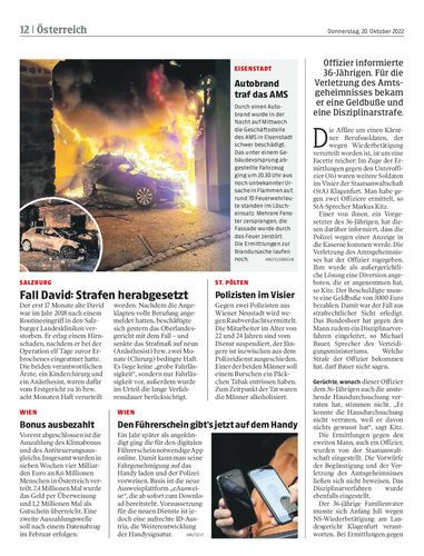 Offizier informierte 36-Jährigen. Für die Verletzung des Amtsgeheimnisses bekam er eine Geldbuße und eine Disziplinarstrafe.