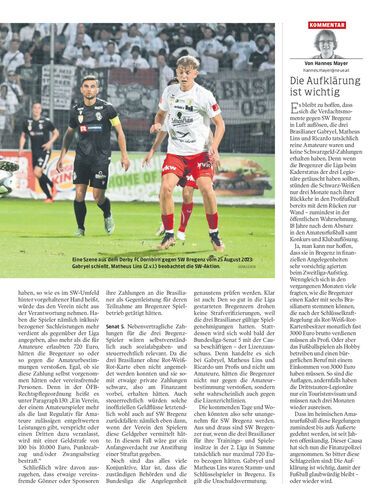 Aufsteiger SW Bregenz hat in der laufenden Zweitliga-Saison mit Gabryel, Matheus Lins und Ricardo drei Brasilianer eingesetzt, die keine Rot-Weiß-Rot-Karte hatten und bei der Bundesliga als Amateure gemeldet waren – an diesem Amateurstatus gibt es große Zweifel. Für SW Bregenz könnte die Causa sehr unangenehm werden. Neben einer Geldstrafe und einem Punkteabzug ist im schlimmsten Fall auch der Zwangsabstieg möglich.