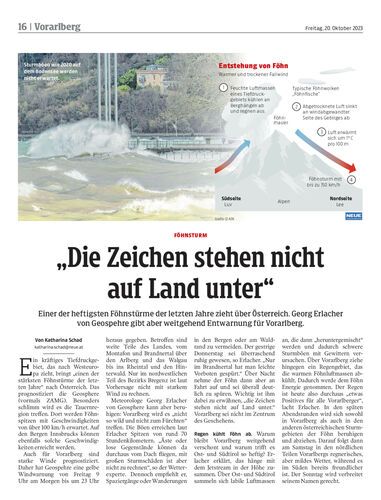 Einer der heftigsten Föhnstürme der letzten Jahre zieht über Österreich. Georg Erlacher von Geospehre gibt aber weitgehend Entwarnung für Vorarlberg.