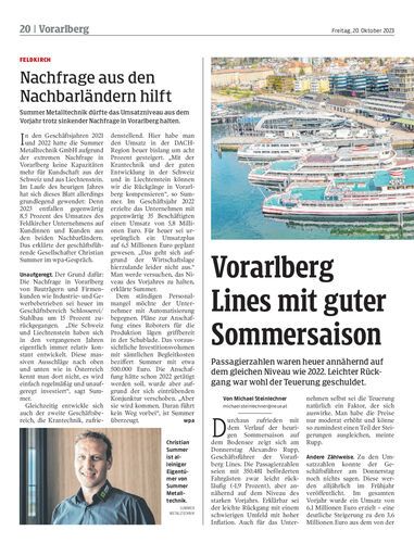 Summer Metalltechnik dürfte das Umsatzniveau aus dem Vorjahr trotz sinkender Nachfrage in Vorarlberg halten.