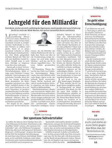 Elon Musk, reicher als reich und König der Egomanen, macht gerade eine neue Erfahrung: Die EU ist nicht der Wilde Westen, hier gelten tatsächlich Recht und Gesetz.