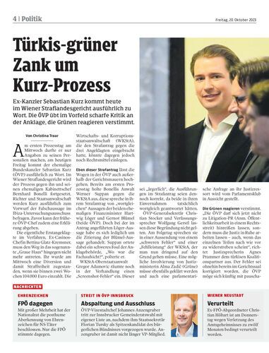 Ex-Kanzler Sebastian Kurz kommt heute im Wiener Straflandesgericht ausführlich zu Wort. Die ÖVP übt im Vorfeld scharfe Kritik an der Anklage, die Grünen reagieren verstimmt.