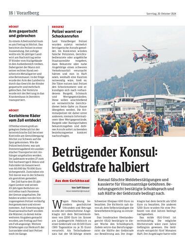 Konsul fälschte Meldebestätigungen und kassierte für Visumsanträge Gebühren. Berufungsgericht bestätigte Schuldspruch und sah Hälfte der Geldstrafe bedingt nach.