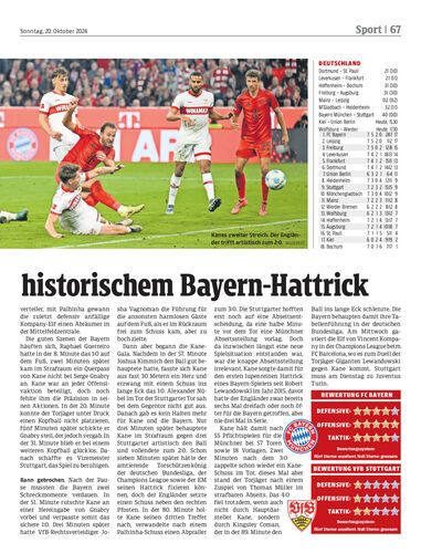 Spielbericht. Der FC Bayern gewinnt nach einer Gala von Harry Kane gegen den VfB Stuttgart zu Hause mit 4:0. Die Münchner, die zuletzt drei Mal sieglos blieben, drehten in der zweiten Halbzeit groß auf.