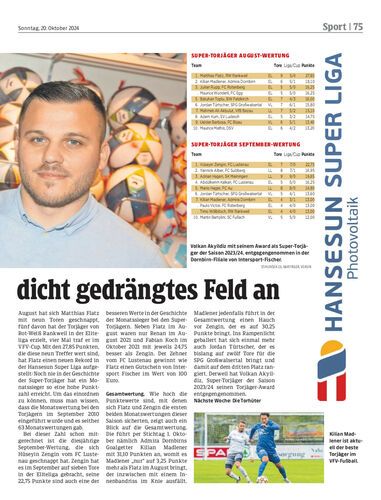 Matthias Flatz und Hüseyin Zengin haben bei den Super-Torjägern die ersten Monatswertungen für sich entschieden, Kilian Madlener führt die Gesamtwertung an.