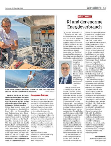 Wie steht es um die Vorarlberger Photovoltaik-Branche? Andreas Müller von Marktführer Hansesun gewährt Einblicke hinter die Kulissen, warnt vor unseriösen Anbietern und fordert zum Schutz der Konsumenten ein Verbot von Anzahlungen auf Photovoltaik-Anlagen.