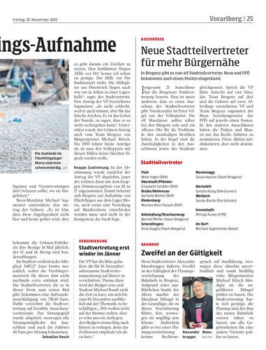 In Bregenz gibt es nun elf Stadtteilvertreter. Neos und FPÖ bekommen auch einen Posten eingeräumt.