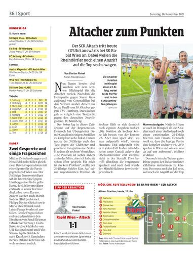 (17 Uhr) auswärts bei SK Rapid Wien an. Dabei wollen die Rheindörfler noch einen Angriff auf die Top sechs wagen.