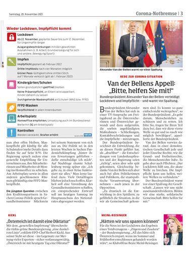 Bundespräsident Alexander Van der Bellen verteidigt Lockdown und Impfpflicht – und warnt vor Spaltung.