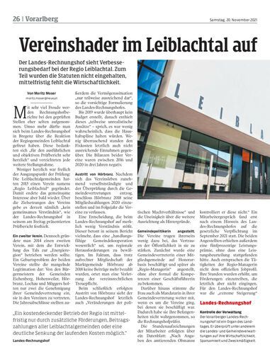 Der Landes-Rechnungshof sieht Verbesserungsbedarf bei der Regio Leiblachtal. Zum Teil wurden die Statuten nicht eingehalten, mittelfristig fehlt die Wirtschaftlichkeit.