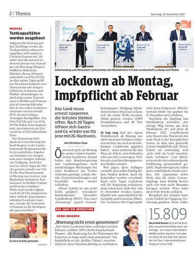 Landeshauptmann Markus Wallner appelliert an die Bevölkerung, Ruhe zu bewahren und Landesrat Johannes Rauch entschuldigt sich für die Politik der letzten Wochen.