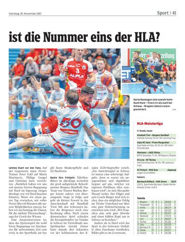 Am heutigen „Super-Samstag“ kommt es zu zwei Spitzenspielen in der HLA. Meister Hard empfängt die Fivers Margarten, Tabellenführer Bregenz trifft auf Schwaz.