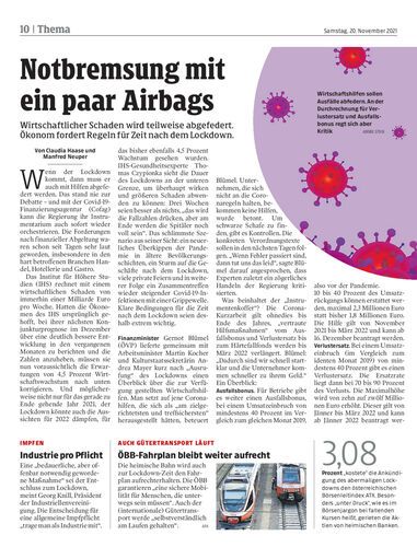 Wirtschaftlicher Schaden wird teilweise abgefedert. Ökonom fordert Regeln für Zeit nach dem Lockdown.