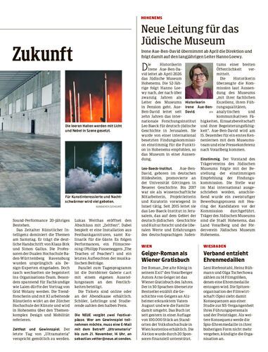 Irene Aue-Ben-David übernimmt ab April die Direktion und folgt damit auf den langjährigen Leiter Hanno Loewy.