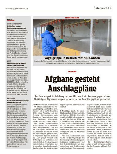 Am Landesgericht Salzburg hat am Mittwoch ein Prozess gegen einen 22-jährigen Afghanen wegen terroristischer Anschlagspläne gestartet.