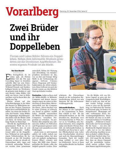 Florian und Lukas Böhler führen ein Doppelleben. Neben dem Informatik-Studium gründeten sie die Dornbirner AppWerkstatt. Ihr erstes eigenes Produkt ist am Markt.
