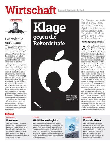 Der Steuerstreit zwischen der EU-Kommission, Irland und Apple erreicht einen neuen Höhepunkt. Es geht um 13 Milliarden Euro, Klagen und harte Worte.