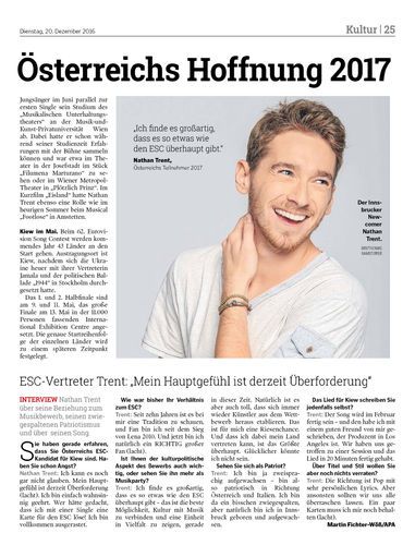 Der Nachwuchssänger Nathan Trent vertritt Österreich beim 62. Song Contest im kommenden Jahr in der Ukraine.
