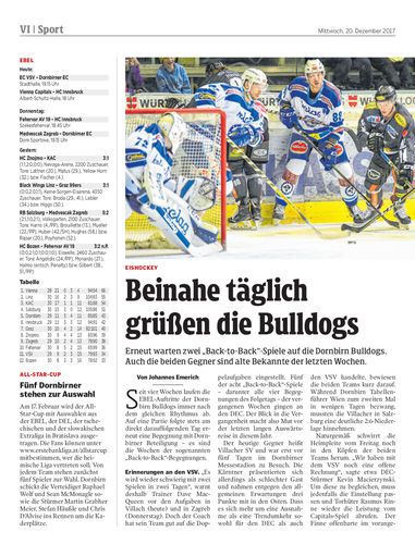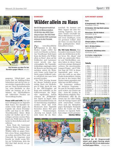 Der EC Bregenzerwald hat heute im Messestadion (19.30 Uhr) den WSV Sterzing zu Gast. Die VEU Feldkirch und der EHC Lustenau müssen in der Fremde antreten.