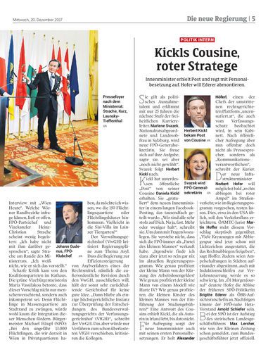 Innenminister erhielt Post und regt mit Personal- besetzung auf. Hofer will Ederer abmontieren.