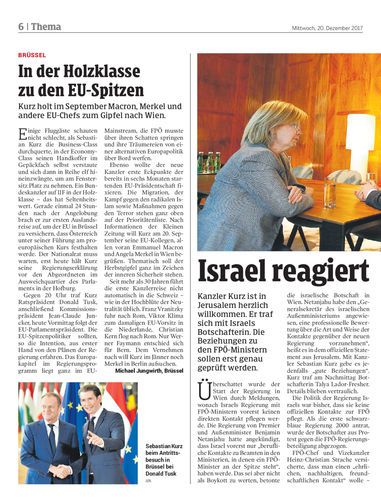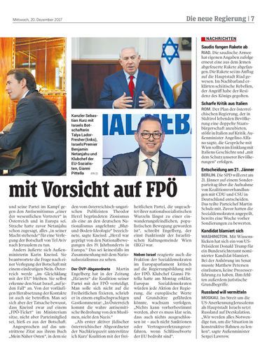 Kanzler Kurz ist in Jerusalem herzlich willkommen. Er traf sich mit Israels Botschafterin. Die Beziehungen zu den FPÖ-Ministern sollen erst genau geprüft werden.
