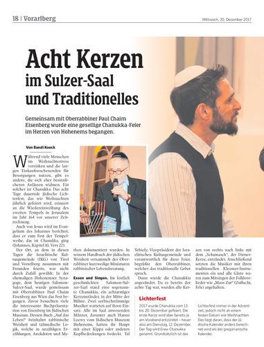 Gemeinsam mit Oberrabbiner Paul Chaim Eisenberg wurde eine gesellige Chanukka-Feier im Herzen von Hohenems begangen.