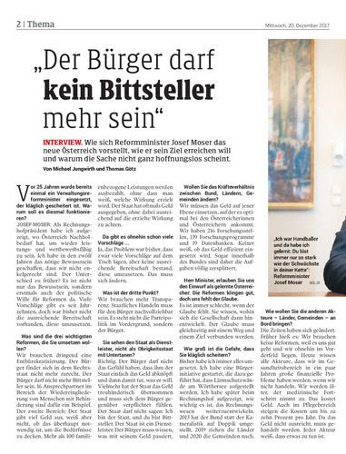 Wie sich Reformminister Josef Moser das neue Österreich vorstellt, wie er sein Ziel erreichen will und warum die Sache nicht ganz hoffnungslos scheint. Von Michael Jungwirth und Thomas Götz