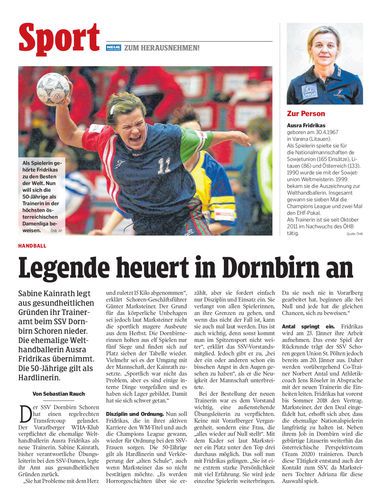 Sabine Kainrath legt aus gesundheitlichen Gründen ihr Traineramt beim SSV Dornbirn Schoren nieder. Die ehemalige Welthandballerin Ausra Fridrikas übernimmt. Die 50-Jährige gilt als Hardlinerin.