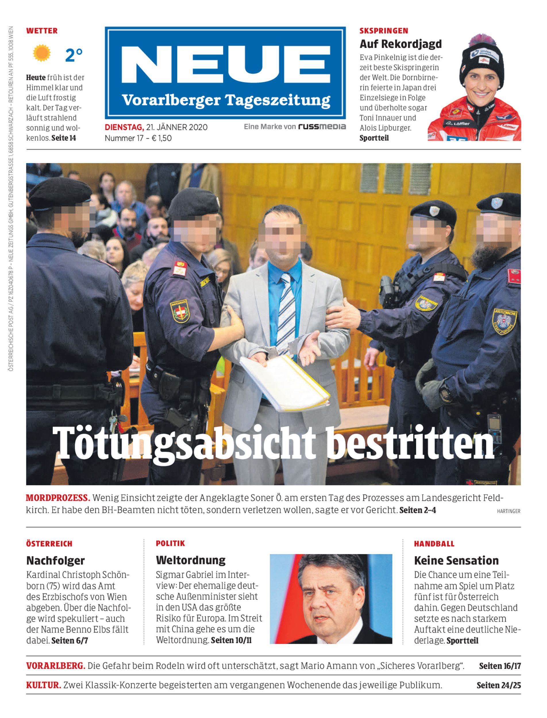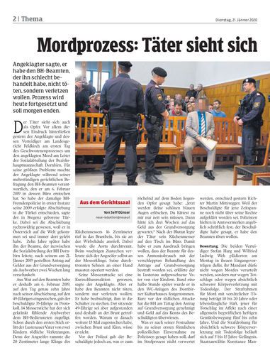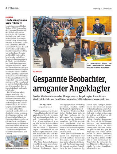 MordProzess. Wenig Einsicht zeigte der Angeklagte Soner Ö. am ersten Tag des Prozesses am Landesgericht Feldkirch. Er habe den BH-Beamten nicht töten, sondern verletzen wollen, sagte er vor Gericht. Seiten 2–4 Hartinger