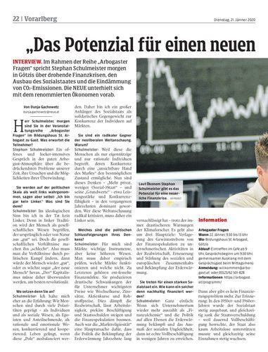 Interview. Im Rahmen der Reihe „Arbogaster Fragen“ spricht Stephan Schulmeister morgen in Götzis über drohende Finanzkrisen, den Ausbau des Sozialstaates und die Eindämmung von CO2-Emissionen. Die NEUE unterhielt sich mit dem renommierten Ökonomen vorab.
