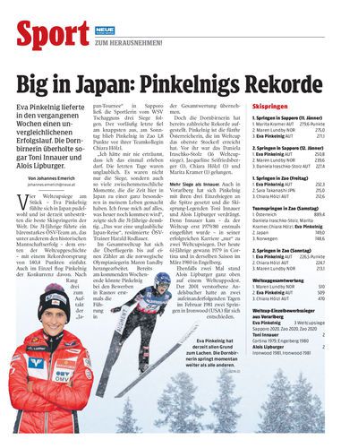 Eva Pinkelnig lieferte in den vergangenen Wochen einen unvergleichlichenen Erfolgslauf. Die Dornbirnerin überholte sogar Toni Innauer und Alois Lipburger.