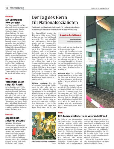 Geldstrafe und bedingte Haftstrafe für vorbestraften Deutschen wegen nationalsozialistischer Wiederbetätigung.