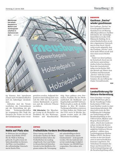Umsatz ging im Geschäftsjahr 2019 um 5,5 Prozent gegenüber dem Vorjahr zurück. An geplanten Investitionen wird aber festgehalten.