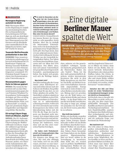 INTERVIEW. Sigmar Gabriel sieht in den USA heute das größte Risiko für Europa. Beim Streit mit China gehe es nur um die Frage: Wer bestimmt die globale Weltordnung? Von Manfred Neuper und Ingo Hasewend