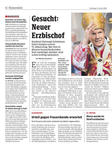 Kardinal Christoph Schönborn feiert morgen seinen 75. Geburtstag. Wer ihm in diesem herausfordernden Amt nachfolgt, darüber wird schon kräftig spekuliert.