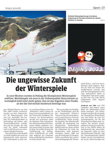 In zwei Wochen werden in Peking die Olympischen Winterspiele eröffnet. Wettkämpfe wie jene in der Volksrepublik China könnte es womöglich bald nicht mehr geben. Das ist das Ergebnis einer Studie, an der die Universität Innsbruck beteiligt war.