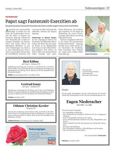 Die gemeinsamen Fastenzeit-Exerzitien der Kurie werden wegen Corona nicht stattfinden.