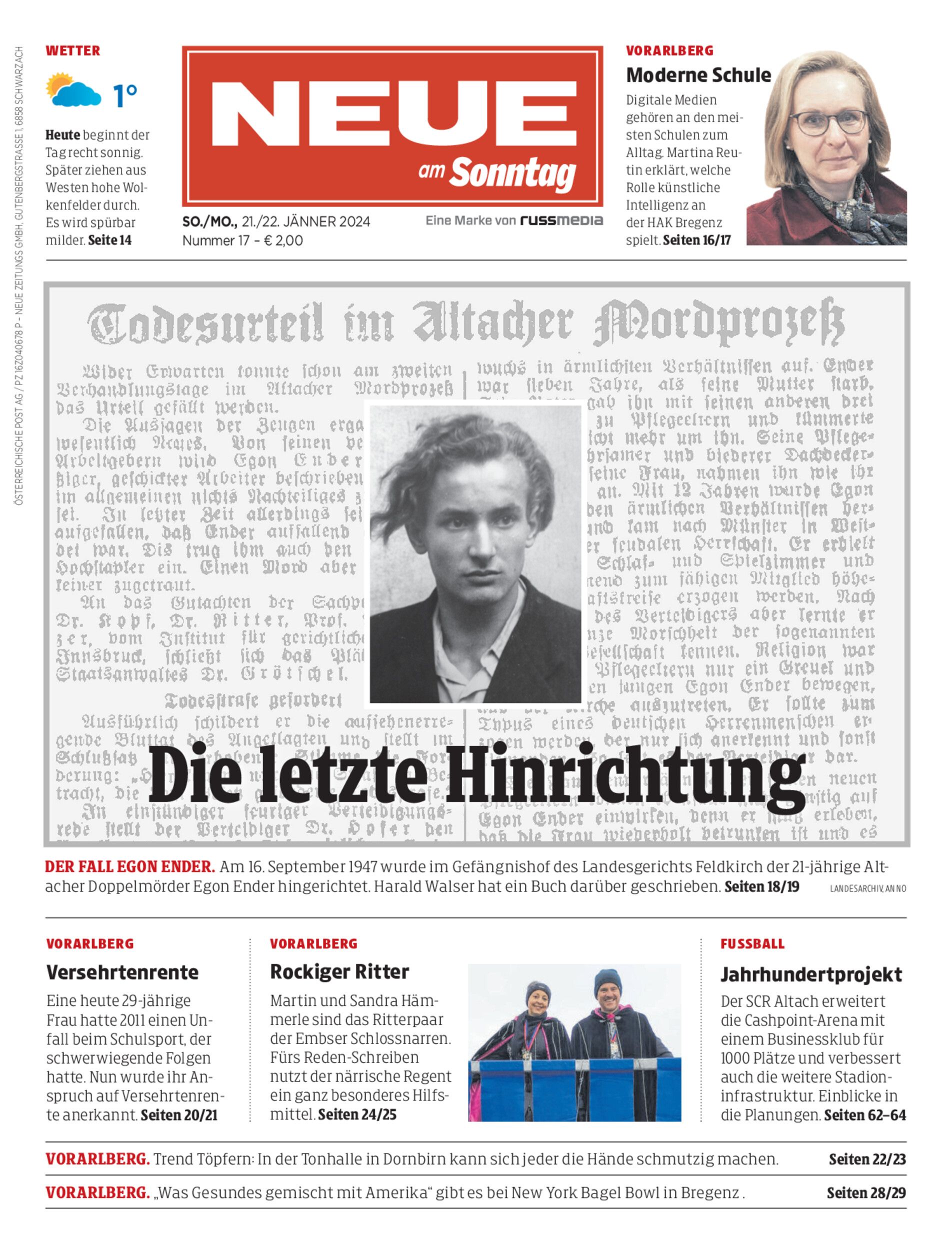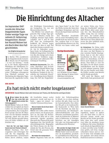 Im September 1947 wurde der Altacher Doppelmörder Egon Ender wenige Tage vor seinem 22. Geburstag hingerichtet. Historiker Harald Walser hat ein Buch über den Fall geschrieben.
