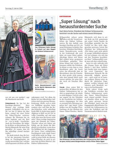Martin und Sandra Hämmerle sind das heurige Ritterpaar der Embser Schlossnarren. Normalerweise widmen sie sich in der närrischen Zeit vor allem den schrägen Tönen bei den Emser Palast-Tätschern.
