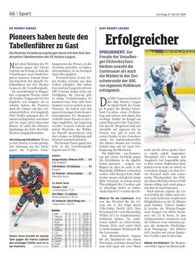 Die Pioneers Vorarlberg empfangen heute mit dem KAC den aktuellen Tabellenersten der ICE Hockey League.