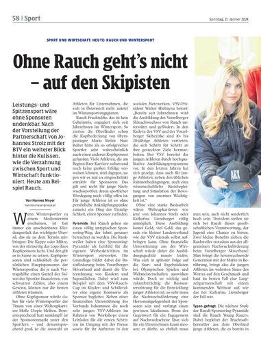 Leistungs- und Spitzensport wäre ohne Sponsoren undenkbar. Nach der Vorstellung der Partnerschaft von Johannes Strolz mit der BTV ein weiterer Blick hinter die Kulissen, wie die Verzahnung zwischen Sport und Wirtschaft funktioniert. Heute am Beispiel Rauch.