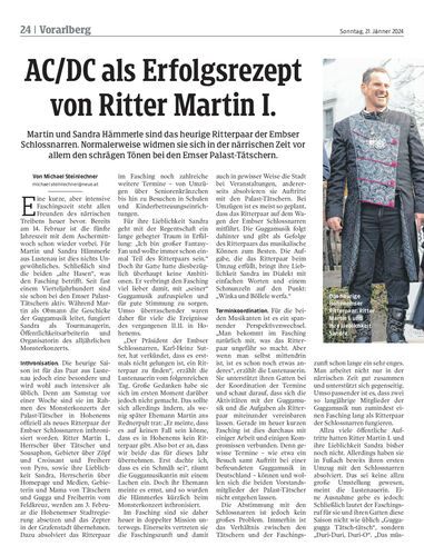 Karl-Heinz Sutter, Präsident der Embser Schlossnarren, berichtet von der Suche nach einem neuen Ritterpaar.
