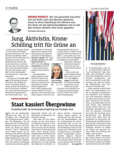 Jung, Aktivistin, Krone: Schilling tritt für Grüne an