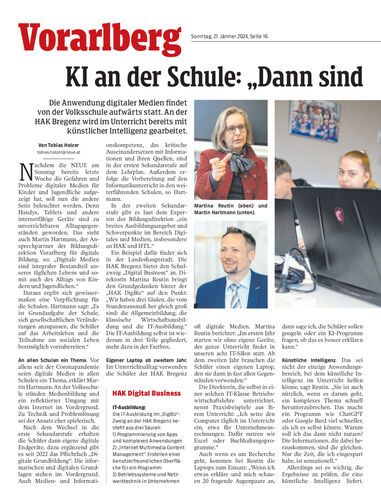 Die Anwendung digitaler Medien findet von der Volksschule aufwärts statt. An der HAK Bregenz wird im Unterricht bereits mit künstlicher Intelligenz gearbeitet.